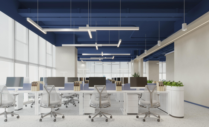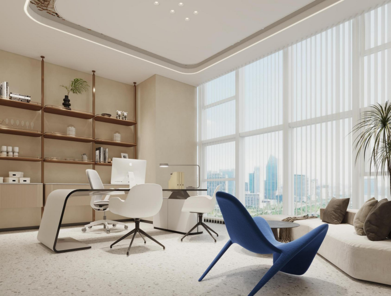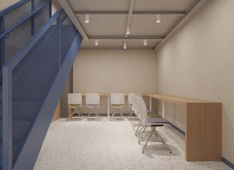 1000㎡办公室本案以现代工业风为基底,融合科技感与人文温度。蓝色裸露管道与原木肌理碰撞,打造开放通透的办公空间;流线型灯光串联动线,灵动且富有活力。前台以原木形象墙传递品牌质感,会议区兼顾高效协作与舒适体验,整体布局兼顾高效办公、品牌展示与员工福祉,塑造兼具颜值与实用性的科创办公新场景。 |